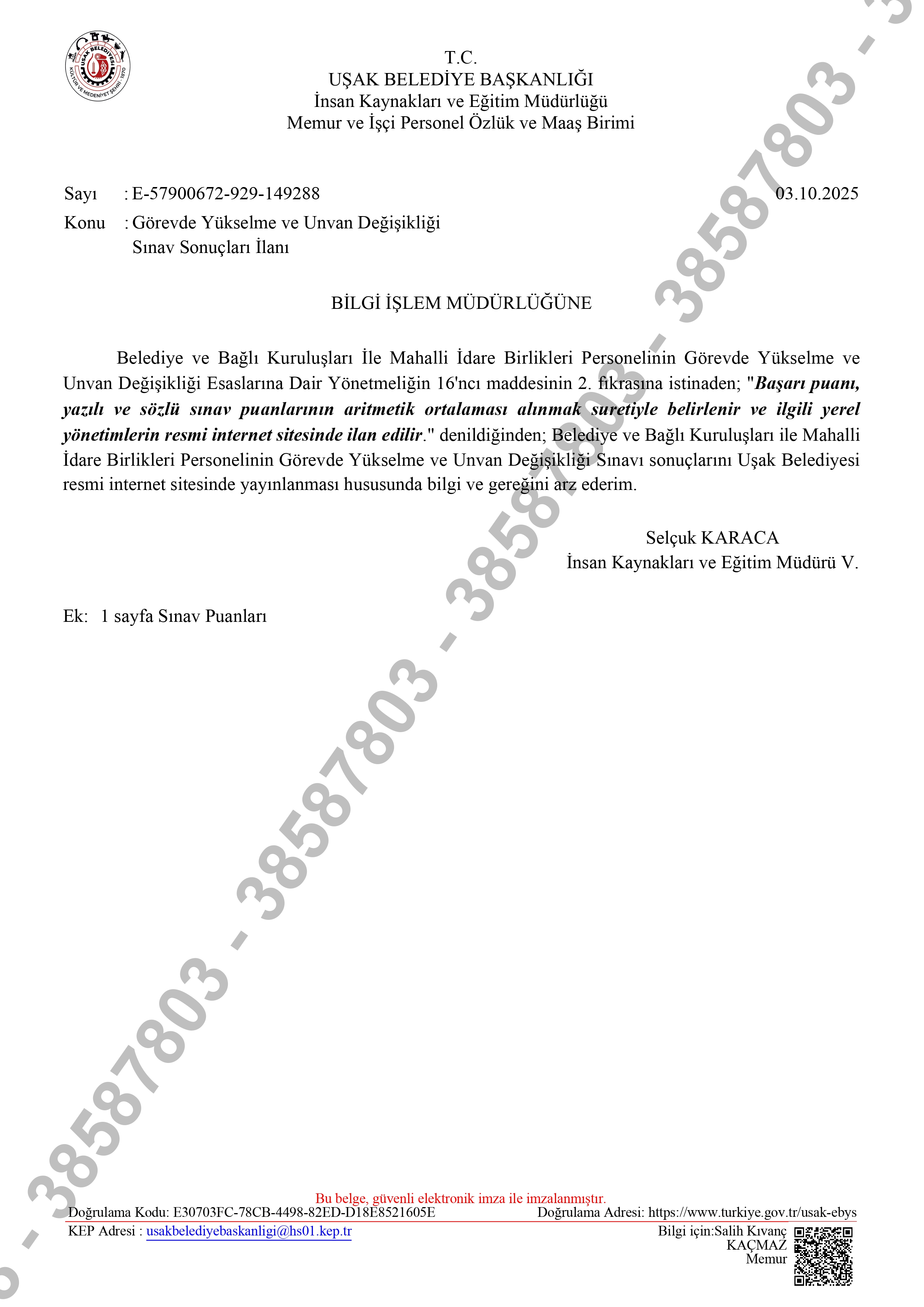 - Görevde Yükselme ve Unvan Değişikliği Sınav Sonuçları İlanı