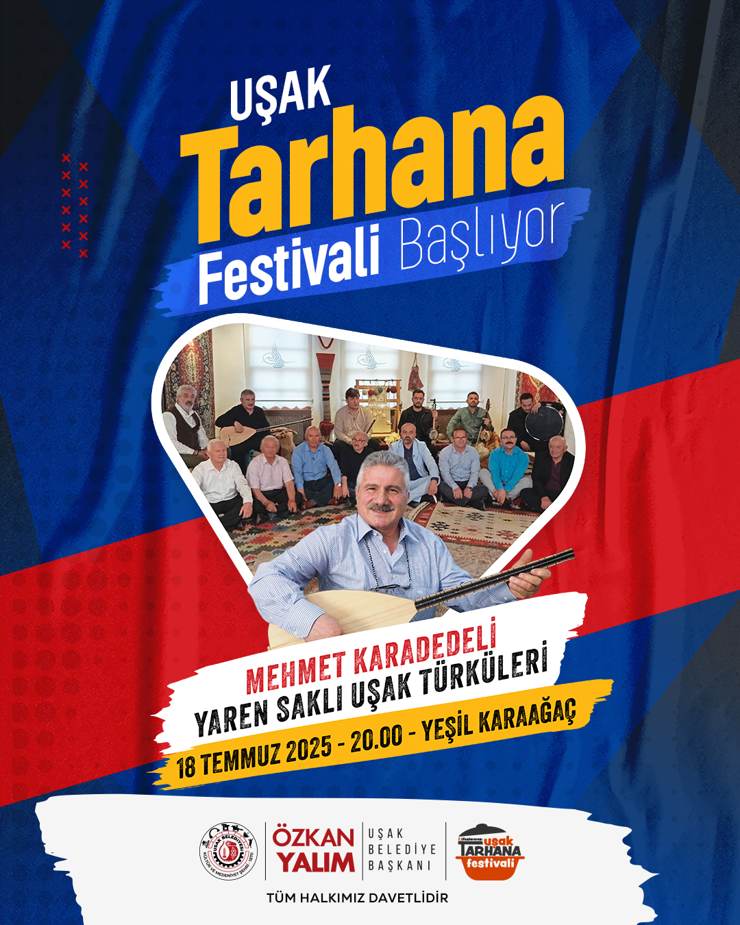 Uşak Belediyesi tarafından bu yıl ikincisi düzenlenecek Uluslararası Uşak Tarhana Festivali, 18-19-20 Temmuz 2025 tarihlerinde Yeşil Karaağaç Doğal Yaşam Merkezi’nde gerçekleşecek.
