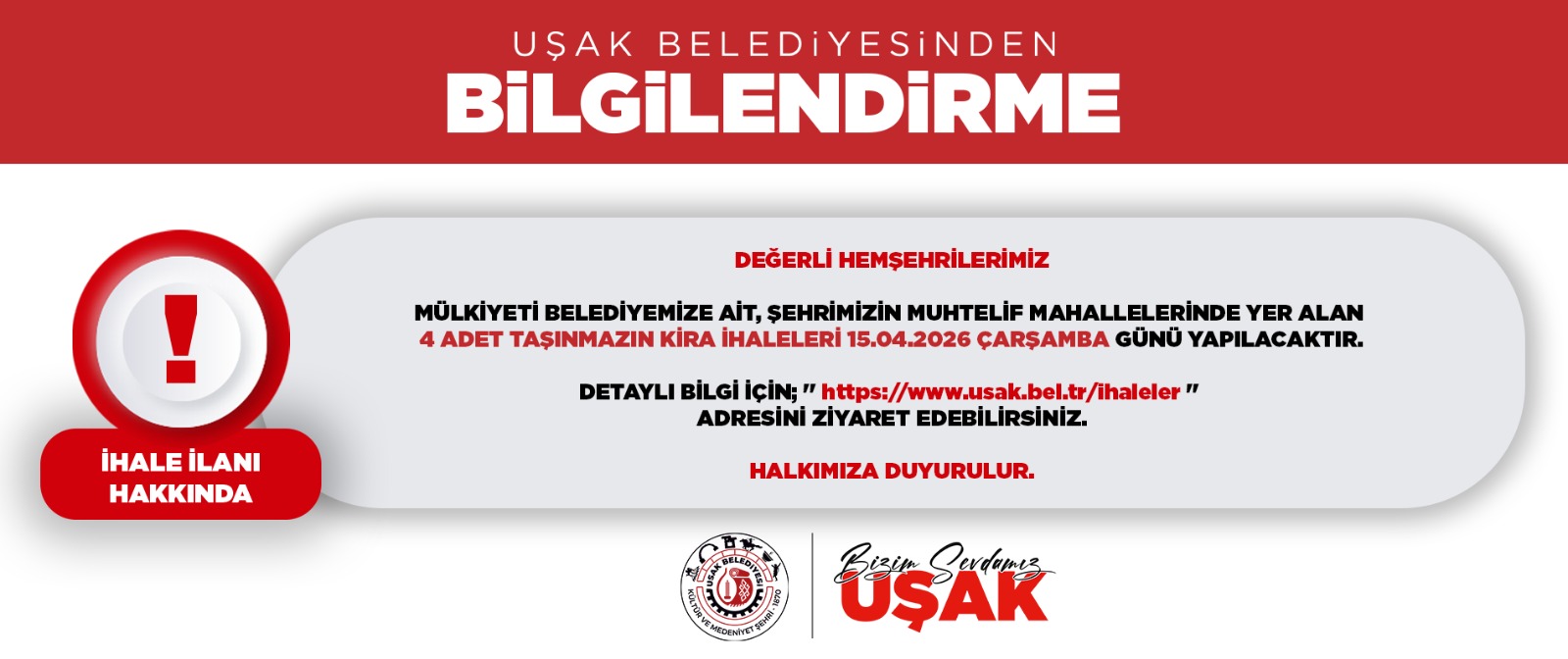DETAYLI BİLGİ İÇİN; '' https://www.usak.bel.tr/ihaleler '' ADRESİNİ ZİYARET EDEBİLİRSİNİZ.