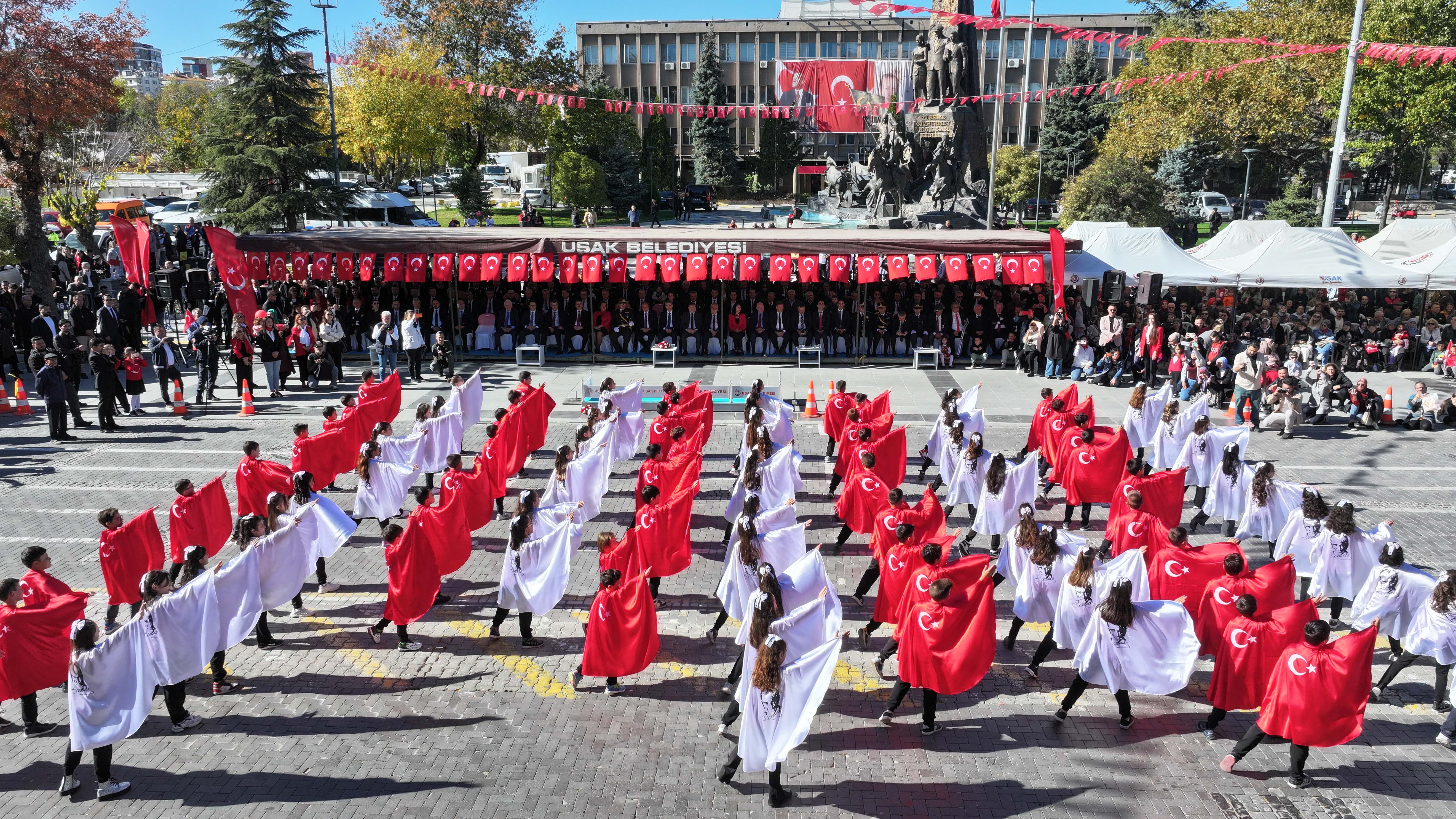 Uşak Belediyesi 29 Ekim Cumhuriyet Bayramı’nın 102. yılı dolayısıyla düzenlediği etkinliklerle bayram coşkusunu şehrin dört bir yanına taşıdı. Her yaştan vatandaşın yoğun katılım gösterdiği programlar; müzik, tiyatro, sergi ve şenliklerle dolu unutulmaz anlara sahne oldu. Kentin büyük bir kısmını Türk Bayraklarıyla donatan Uşak Belediyesi vatandaşların bayramı doyasıya kutlaması için kırmızı beyaza boyanan alanlarda etkinlikler düzenledi.