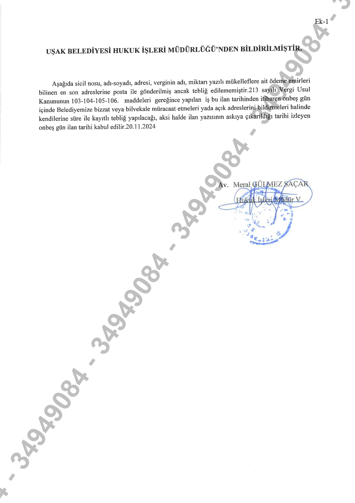 2020 - 2025 Yıllarına Ait Ödeme Emri Listesi - Hukuk İşleri Müdürlüğü Bildirimi