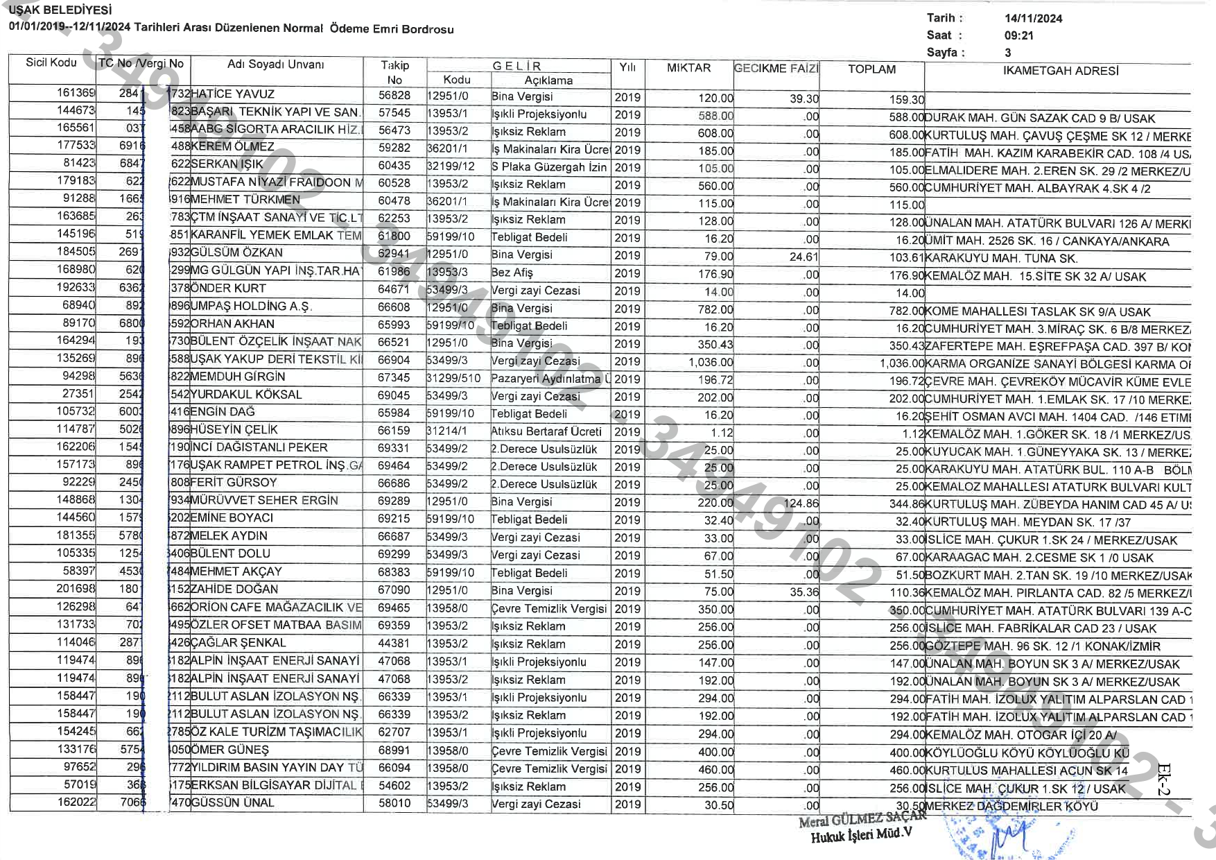 2019 - 2021 Yılına Ait Ödeme Emri Listesi - Hukuk İşleri Müdürlüğü Bildirimi 20 Kasım 2024, 08:26