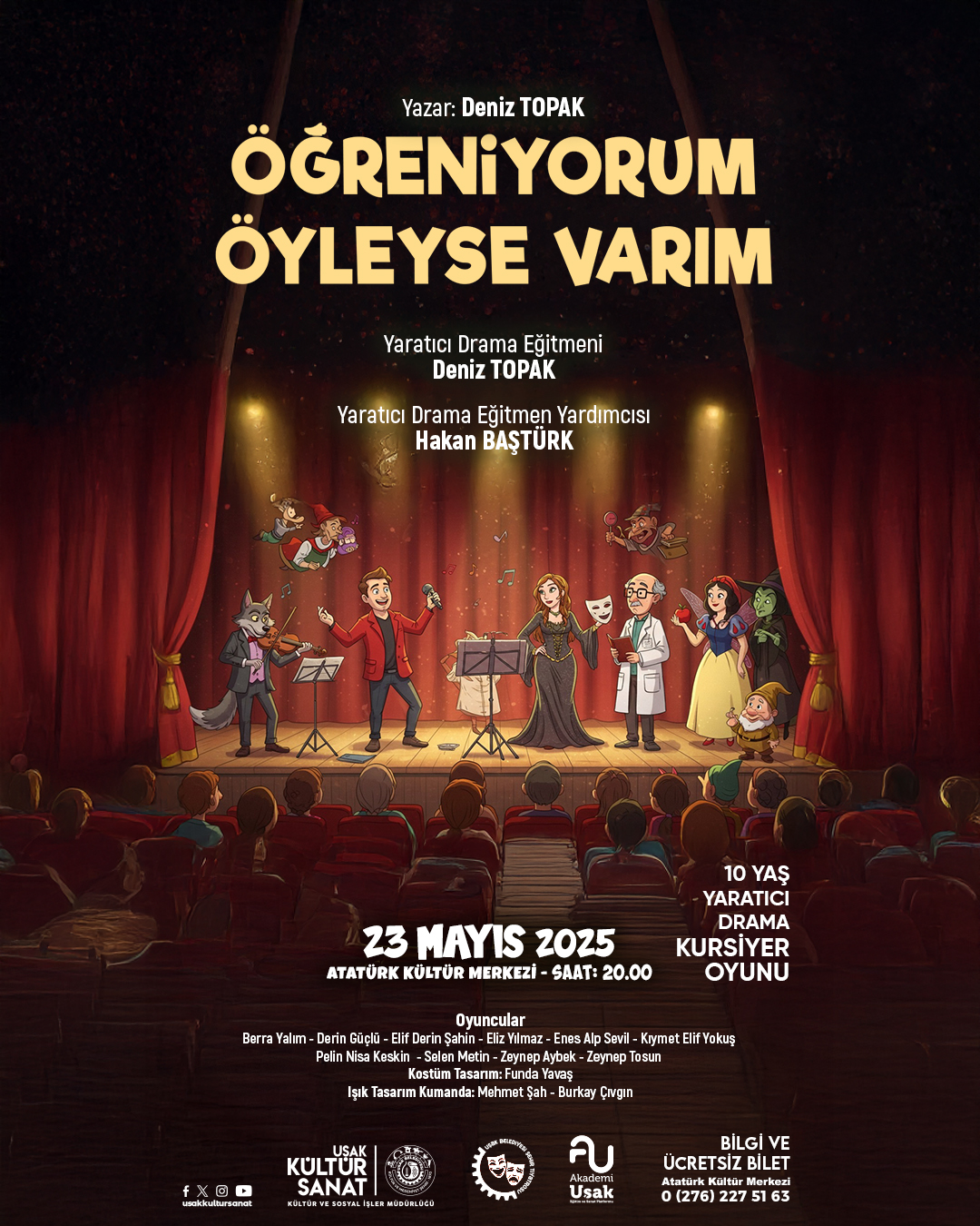 10 yaş yaratıcı drama kursiyerlerinin sahneleyeceği bu anlamlı oyun, öğrenmenin hayatımıza kattıklarını eğlenceli bir dille anlatıyor.