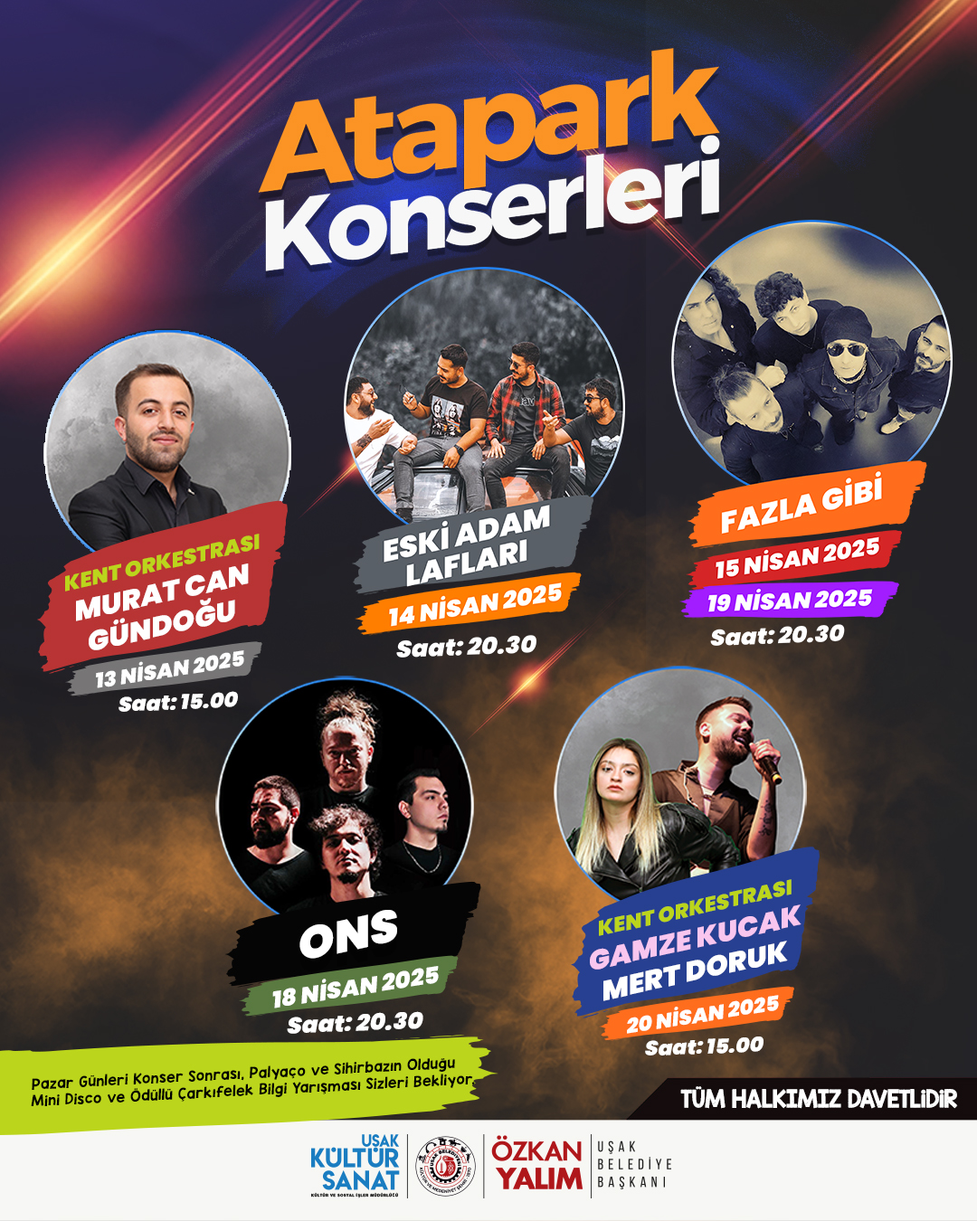 Atapark Konserleri Başlıyor!Uşak bu Nisan müziğe doyacak! Uşak Belediyesi’nin düzenlediği Atapark Konserleri ile birbirinden özel sanatçılar ve gruplar sizlerle buluşuyor.Konser TakvimiKent Orkestrası & Murat Can Gündoğu – 13 Nisan | Saat 15.00Eski ...