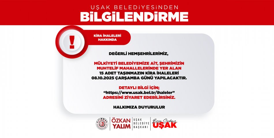 15 ADET TAŞINMAZIN KİRA İHALELERİ HAKKINDA