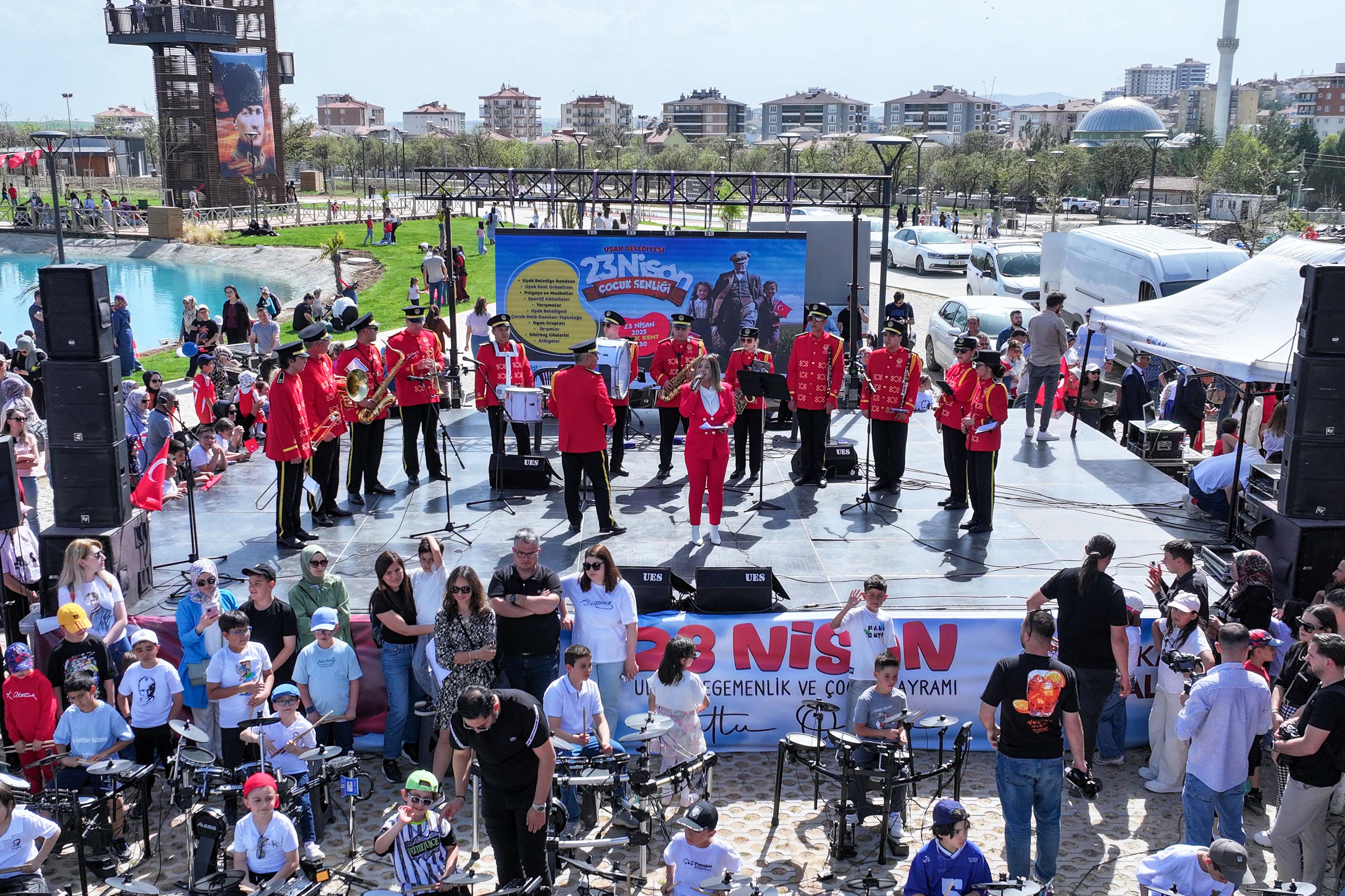Bayram kutlamaları kapsamında düzenlenen etkinlikler adeta bir şenlik havasında geçti. Uşak Belediye Bandosu ve Kent Orkestrası’nın müzikleri eşliğinde başlayan program; palyaçolar, sevimli maskotlar, eğlenceli sportif aktiviteler, heyecan dolu yarışmalar, halk dansları gösterileri, yaratıcı atölyeler, sihirbaz gösterisi ve sahne performanslarıyla zenginleşti. Ayrıca sürpriz hediyelerle dolu etkinliklerde çocuklar hem eğlendi hem de unutulmaz anılar biriktirdi.