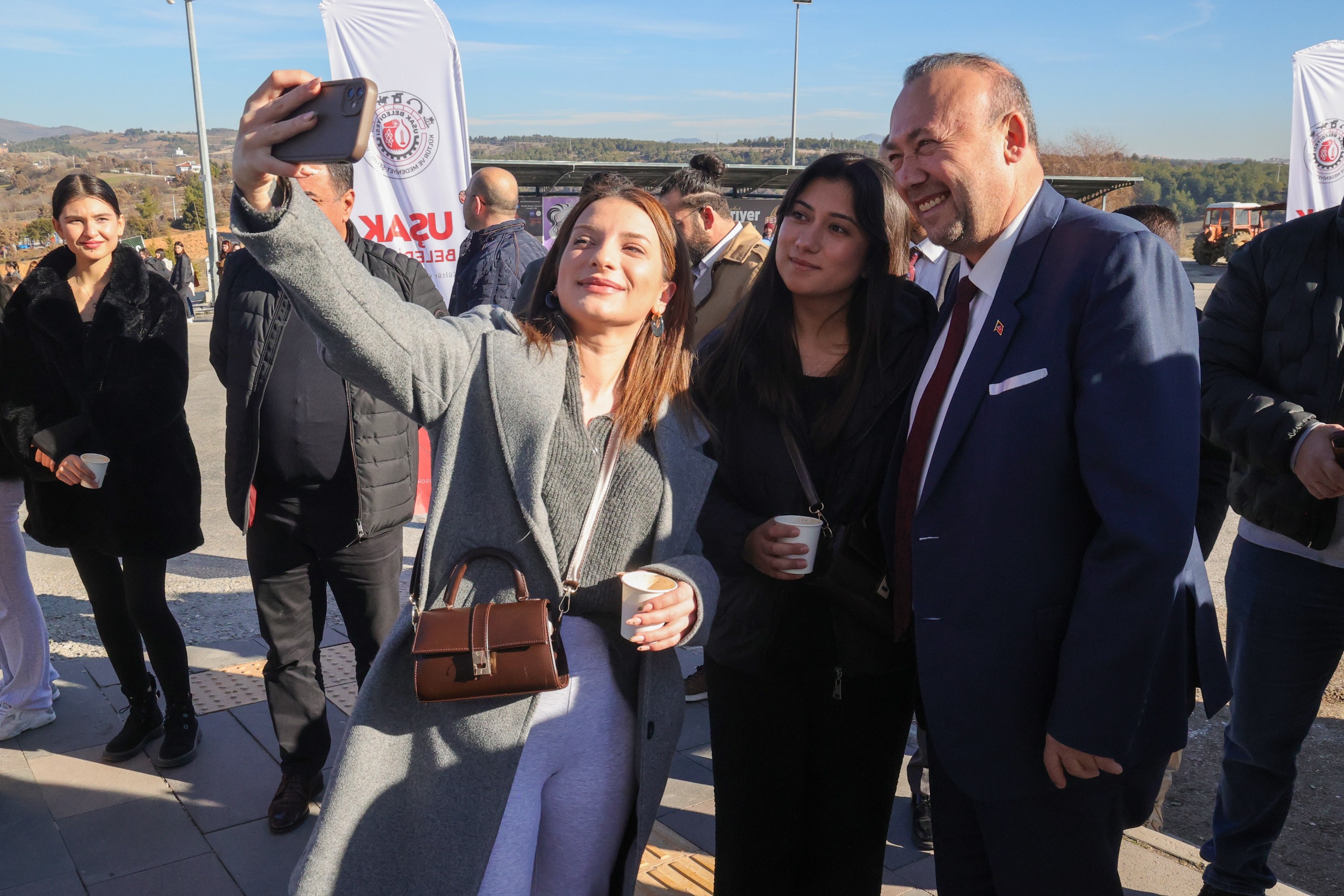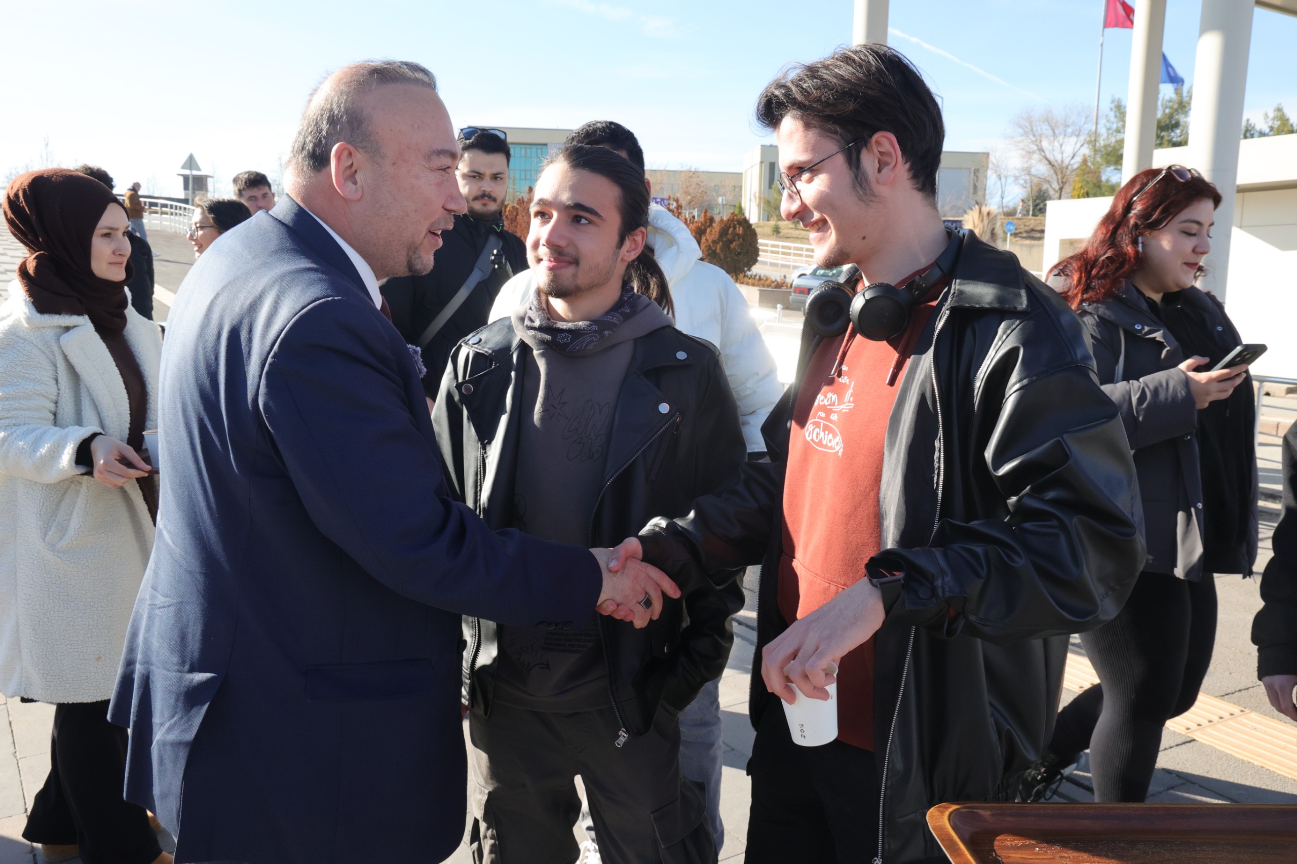 Sabah saatlerinde Uşak Üniversitesi Kampüsüne tarhana çeşmesi kurduran Başkan Yalım, burada ekipleriyle birlikte öğrencilere Guinness rekoruna sahip tescilli tarhana çorbasını ikram etti. Gençlerin özel ilgisiyle karşılaşan Yalım, farklı bölümlerde okuyan birçok öğrenciyle keyifli sohbetler gerçekleştirerek onlarla hatıra fotoğrafı çektirdi.