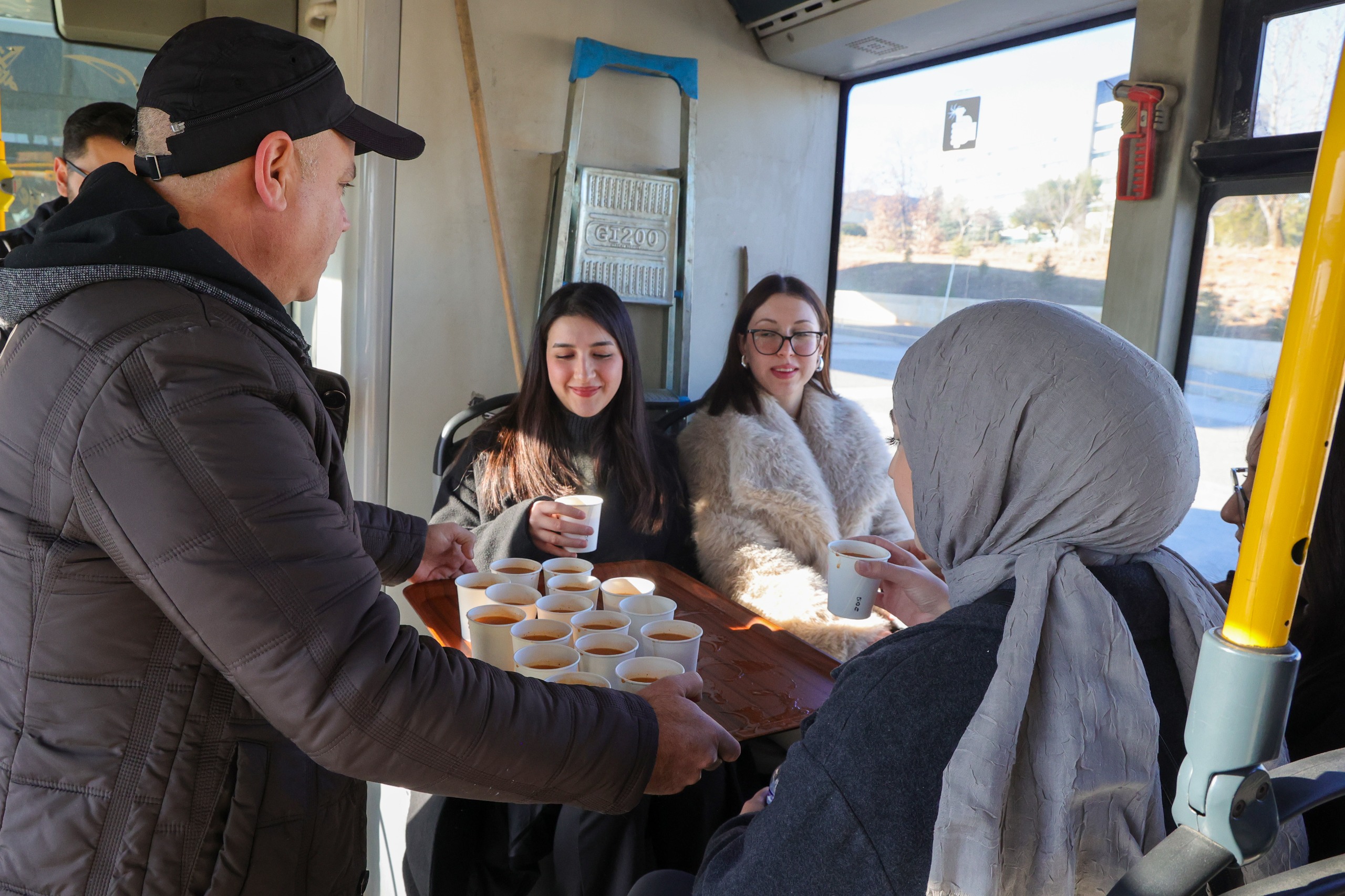 Zorlu sınav döneminde olan üniversite öğrencilerine moral olmak adına yardımcılarıyla birlikte sıcak tarhana çorbası dağıtımı gerçekleştiren Uşak Belediye Başkanı Özkan Yalım; öğrencilerle tek tek sohbet ederek sınavlarında başarılar diledi.