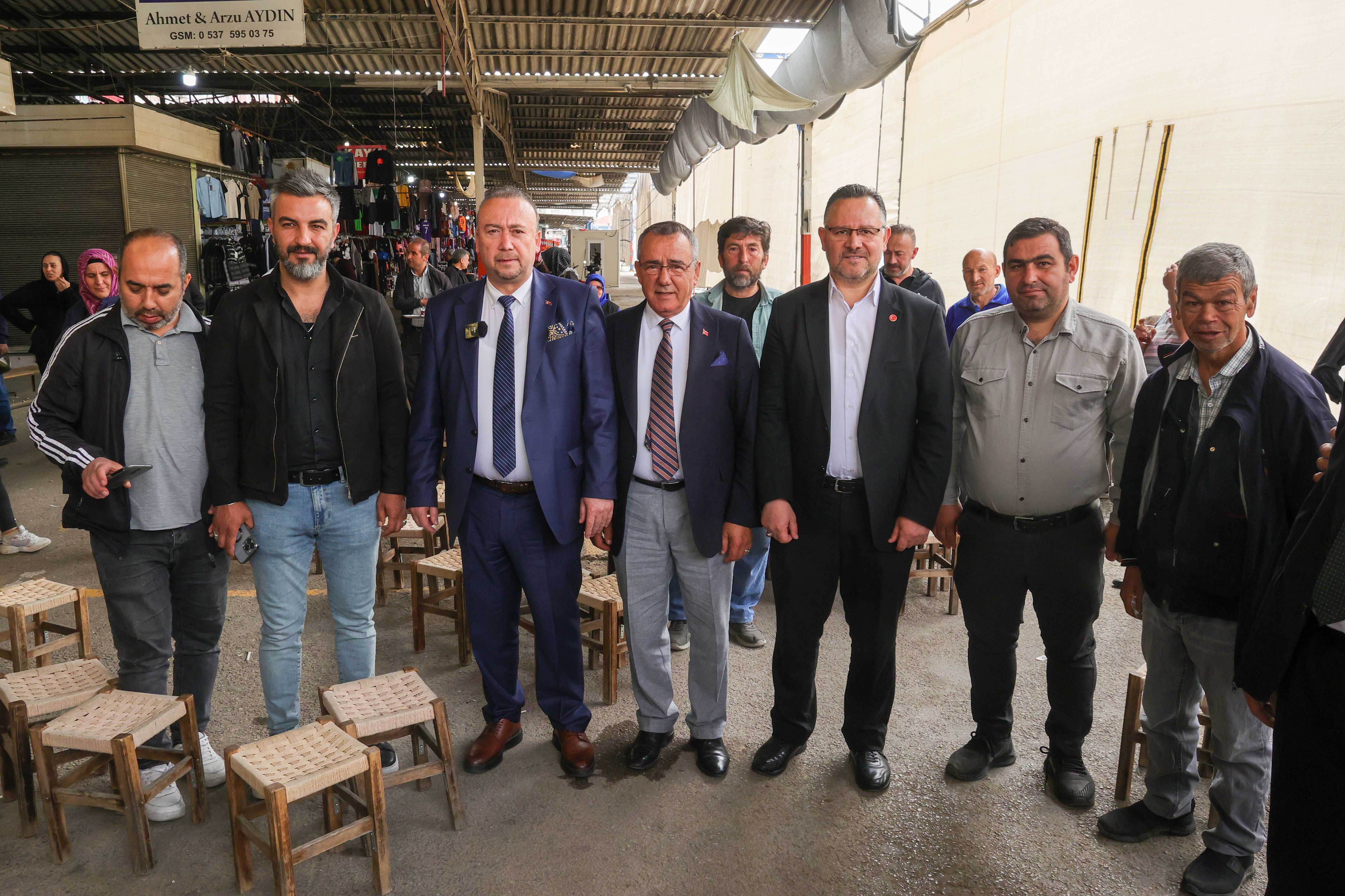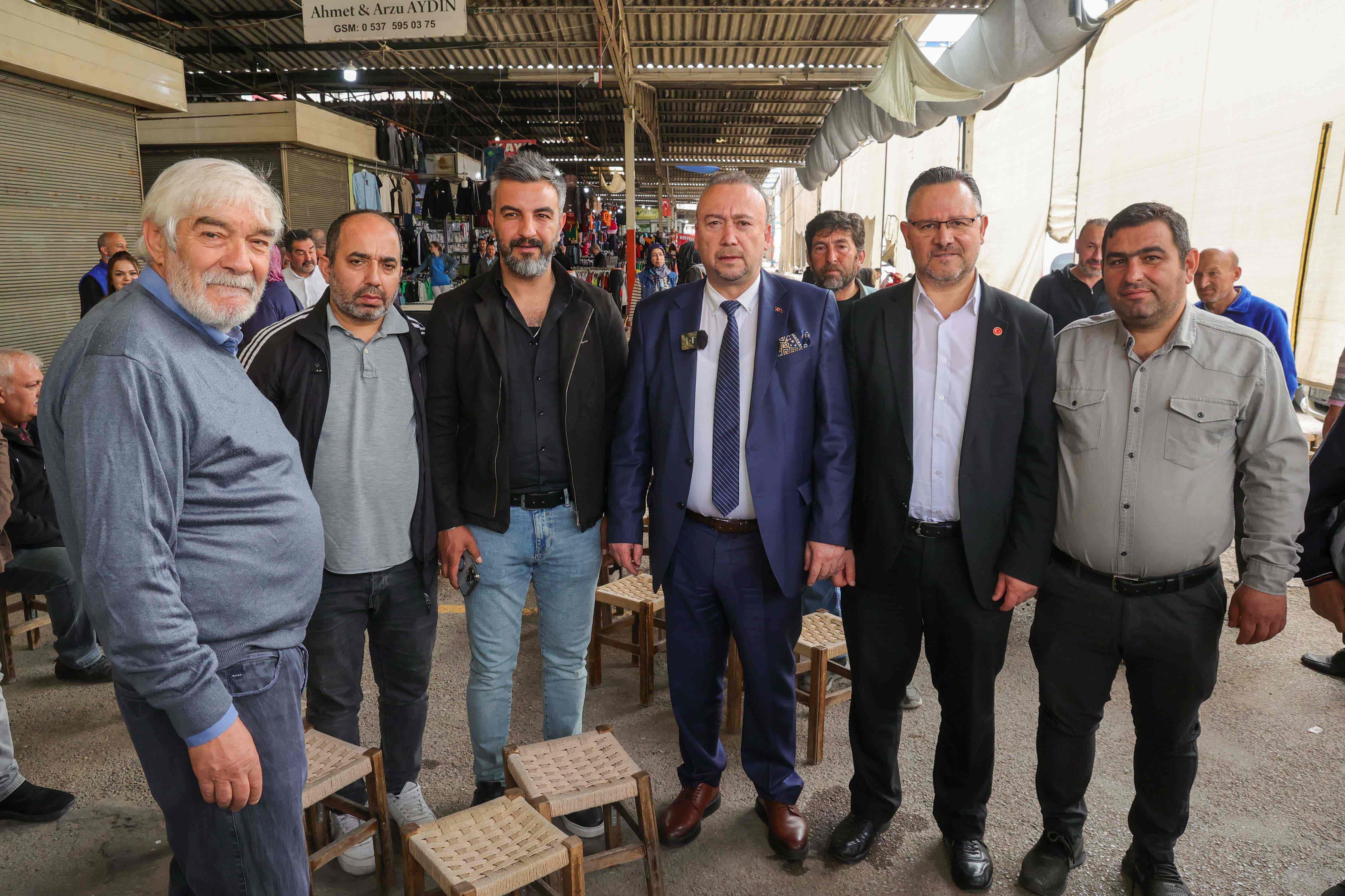 Başkan yalım programın ardından esnafla birlikte Pazar alanını gezerek incelemelerde bulundu.