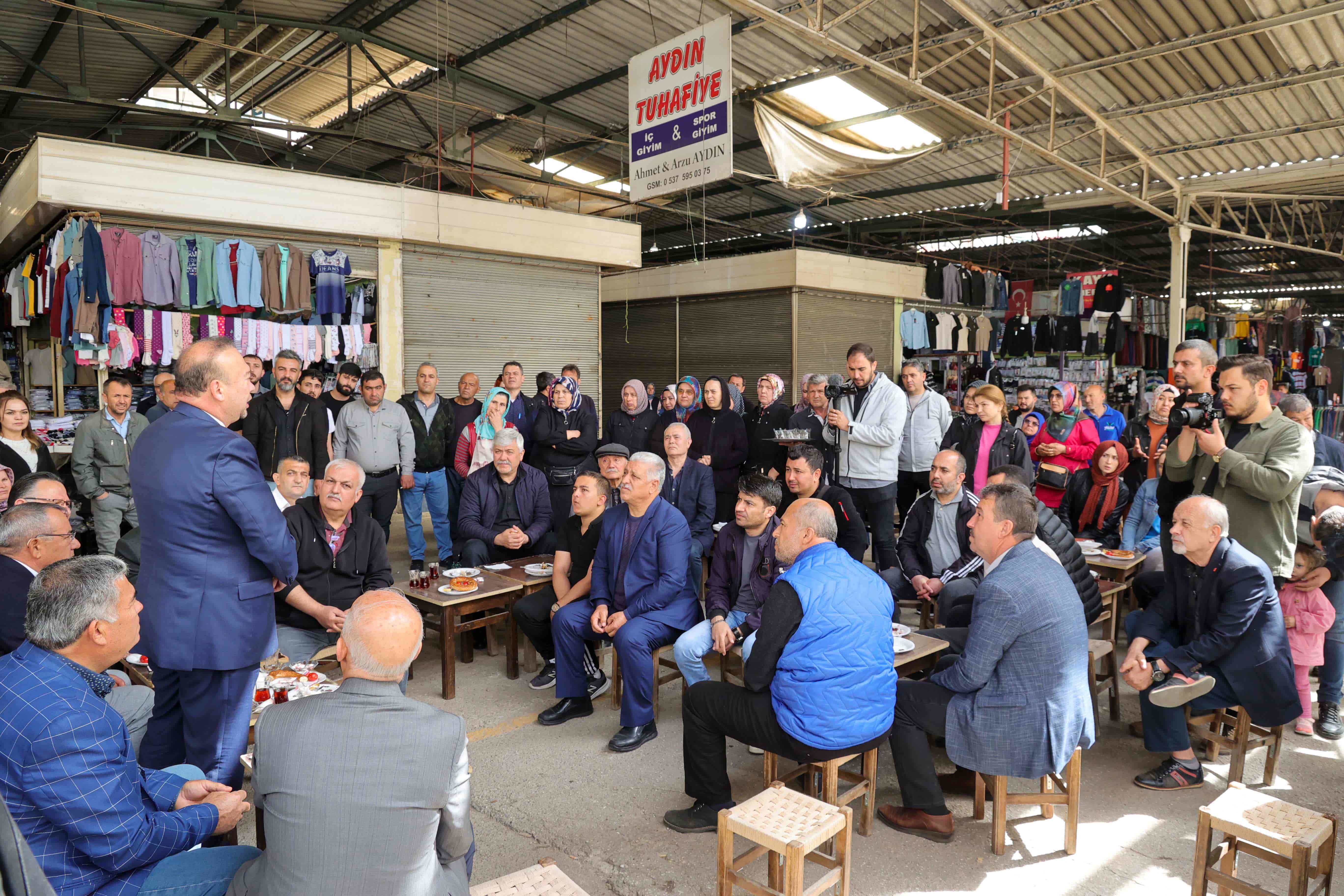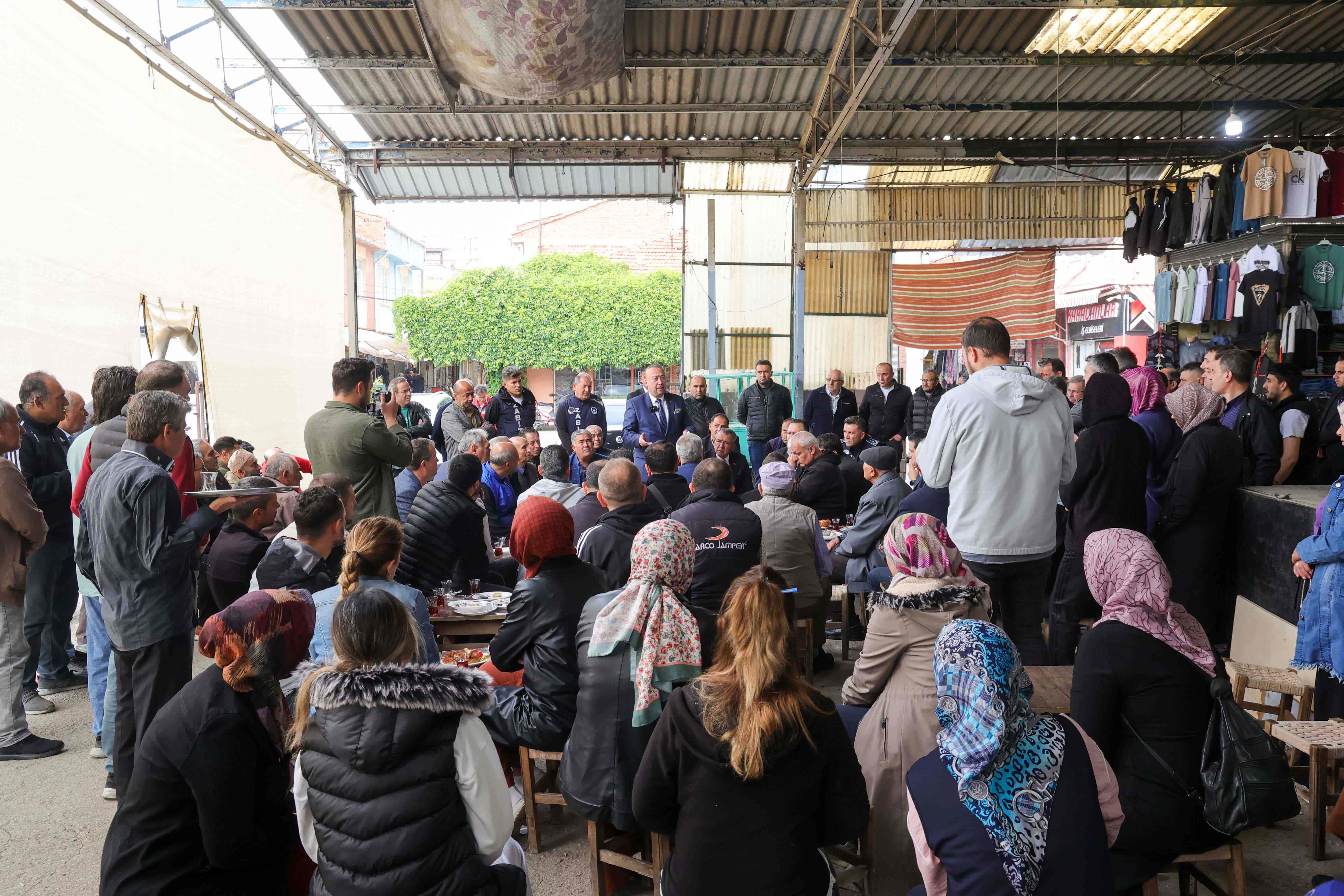 Programda konuşan Başkan Yalım; yakın zamanda bölgede bulunan ayakkabıcılar çarşısında esnafla buluştuklarını, bugün de pazar esnafıyla bir araya gelerek sorunların çözümü için gerekli değerlendirmeleri yaptıklarını ifade etti. Pazar yerinin mevcut fiziki durumunun farkında olduklarını anlatan Başkan Yalım, esnafın alandaki belirsiz durumdan ne kadar etkilendiğini bildiklerini söyledi.