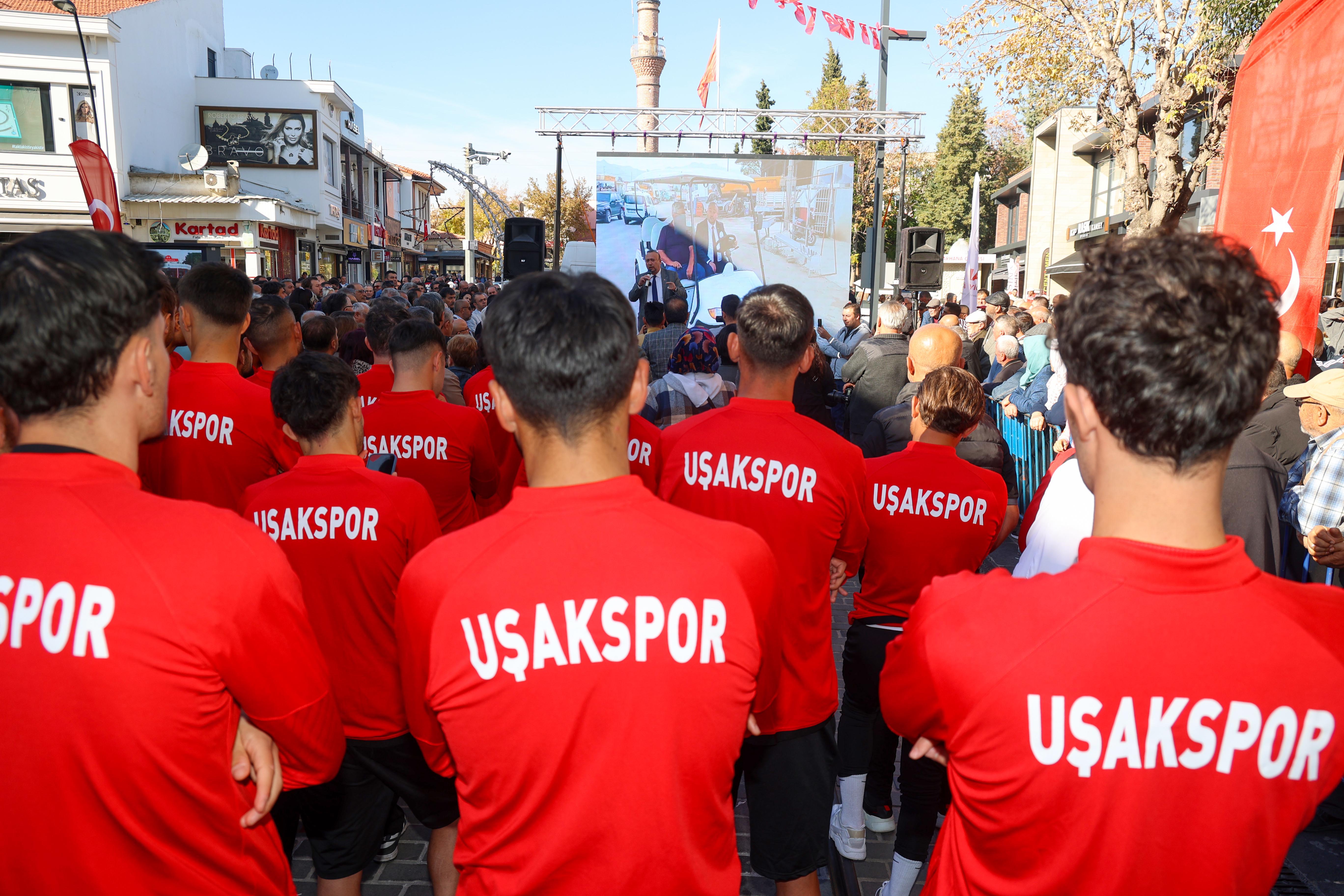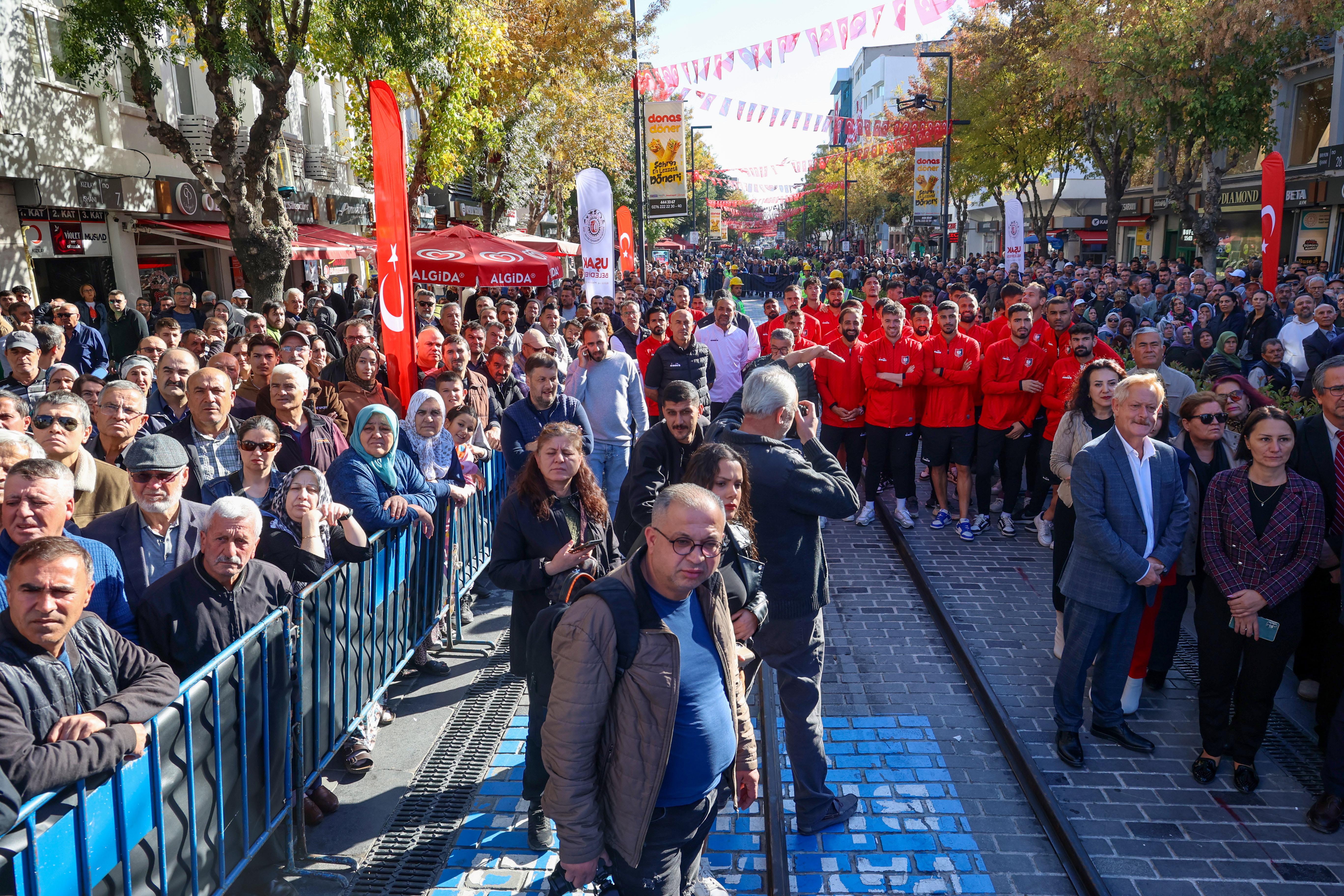 Kent merkezinde gerçekleşen törene Uşak İl Genel Meclisi Başkanı Kadir Uslu, Cumhuriyet Halk Partisi Uşak İl Başkanı Sevinç Yazgan, Belediye Başkan Yardımcıları Halil Arslan, Serap Saruhan, Reyhan Aydın ve Serdar Arıcan, Belediye Meclis Üyeleri, ilçe belediye başkanları, sivil toplum kuruluşu temsilcileri, Uşakspor takımı ve yöneticileri, Gara Tren firma yetkilileri, yerel ve ulusal basın mensupları ve çok sayıda vatandaş katıldı.