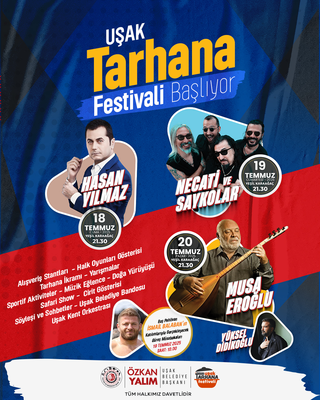 Öte yandan 19 Temmuz Cumartesi günü saat 10.00’da ünlü başpehlivan İsmail Balaban’ın katılımıyla gerçekleşecek olan yağlı güreş müsabakaları festivale ayrı bir heyecan katacak. Alışveriş stantları, halk oyunu gösterileri ve sürpriz etkinliklerle dolu geçecek festival; kültür, müzik ve eğlenceyi bir araya getirerek Uşak’ta yaz akşamlarına renk katacak.