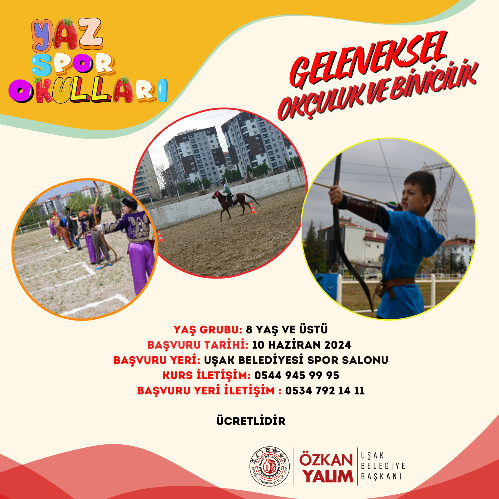 Uşak Belediyesi Spor İşleri Müdürlüğü, gençler için dopdolu bir yaz sezonu programı hazırladı. 10 Haziran itibariyle başlayacak kurs başvurularıyla birlikte; Uşaklı gençler dövüş sporlarından yüzmeye, binicilikten okçuluğa kadar 8 farklı branşta eğitim alma fırsatı bulacak.