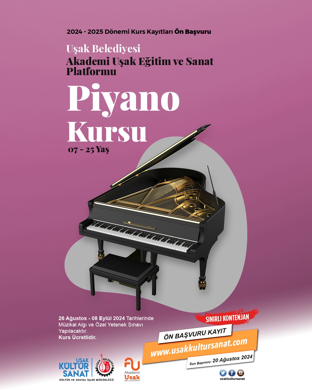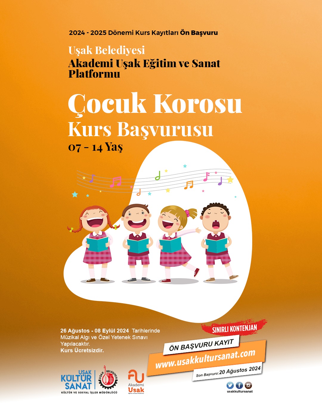 Öte yandan vatandaşlarımızın yaratıcılığını keşfederek geliştirebileceği Gençlik ve Çocuk Korosu Kurslarının ücretsiz olacağını duyuran Uşak Belediyesi Akademi Uşak Eğitim ve Sanat Platformu; Sanat dolu bir yıl için son başvuru tarihinin 20 Ağustos olduğunu açıkladı.