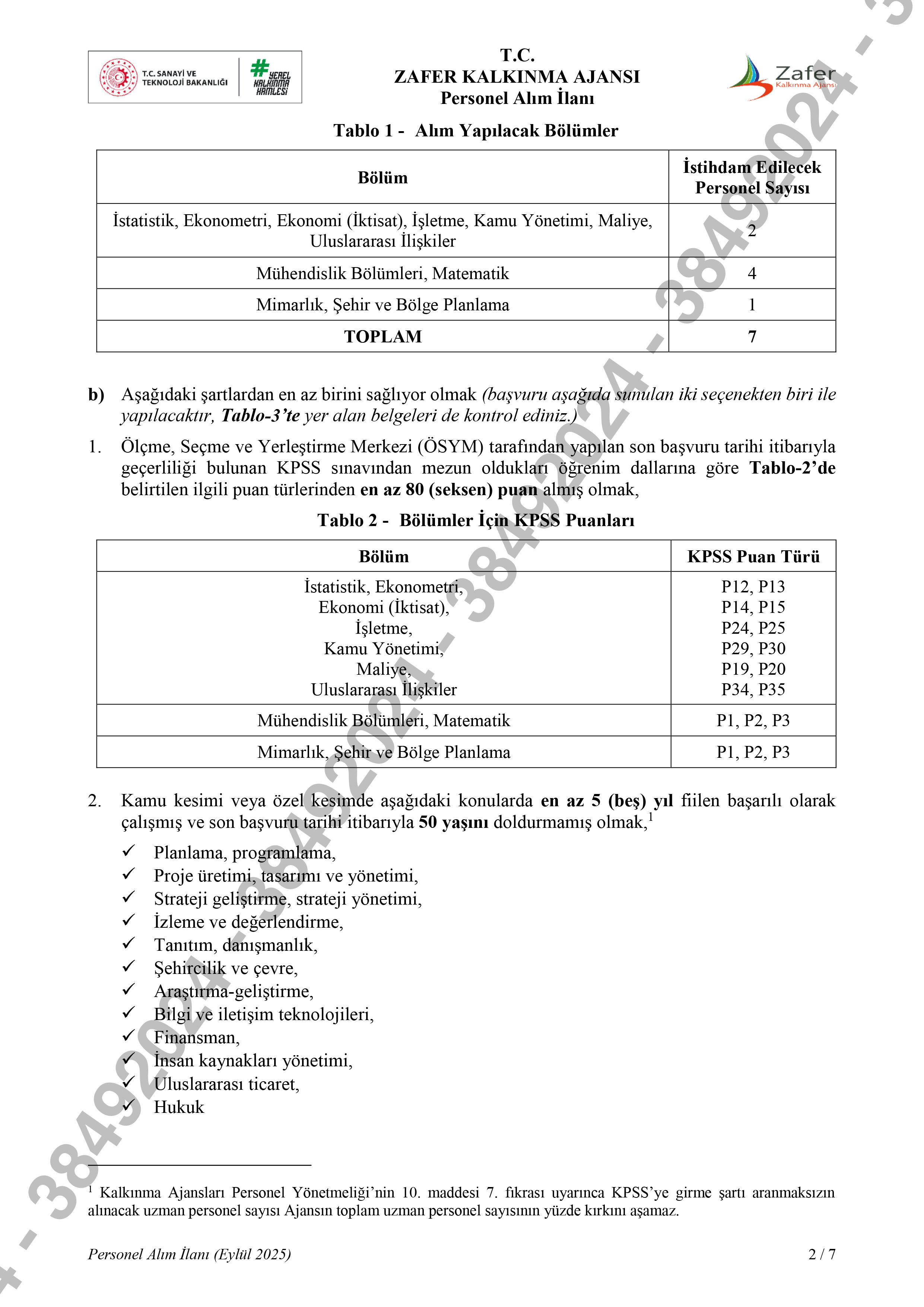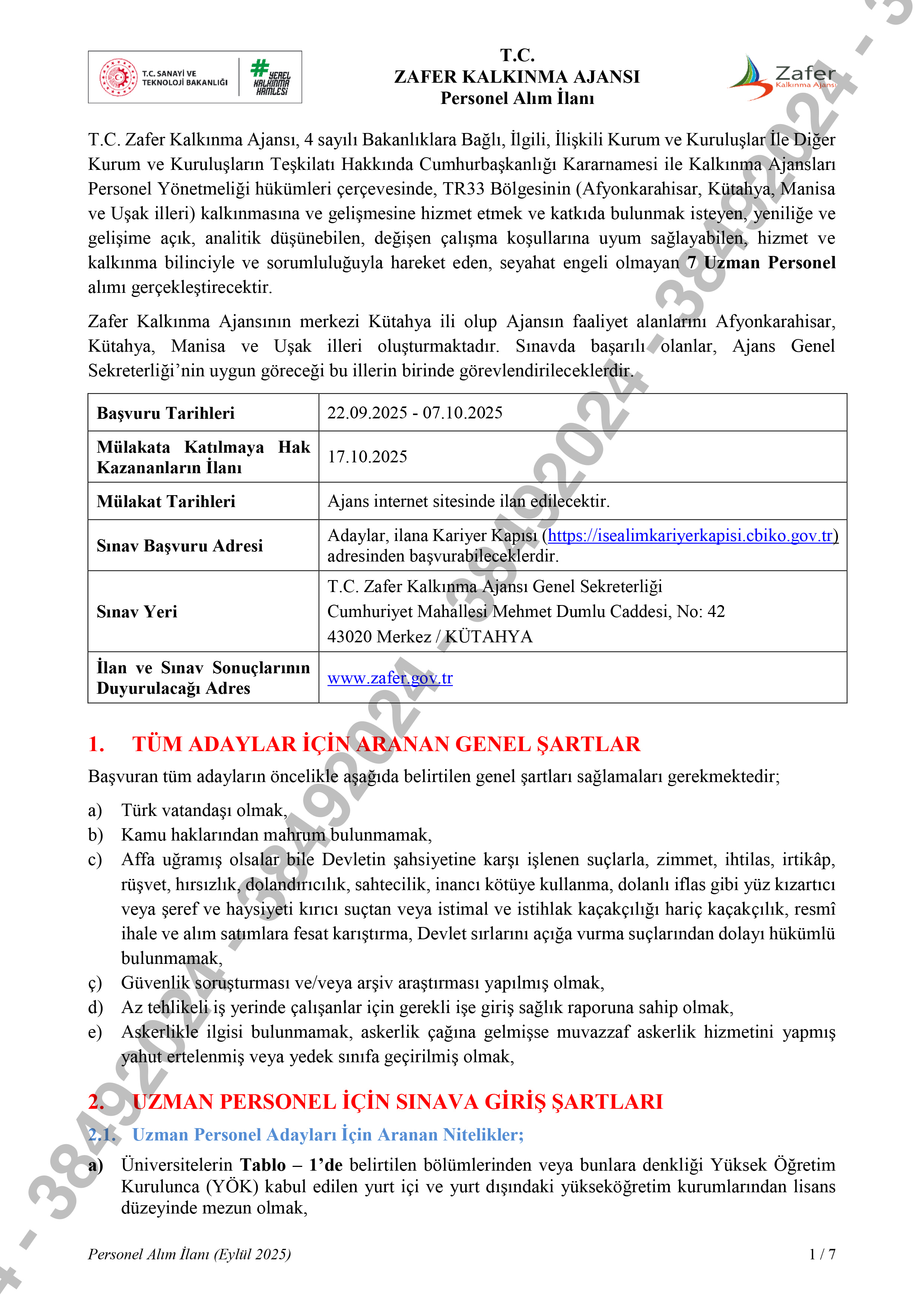ZAFER Kalkınma Ajansı Personel Alım İlanı 02 Ekim 2025, 09:28